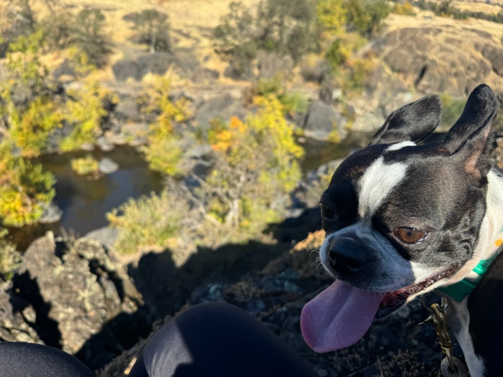 Grief took me walking again. We walked on the South Rim Trail named for Annie Bidwell. Grief led me and Dottie through grass the color of butter and underneath trees still dotted with the leaves confused by a 45-degree morning and an 80-degree afternoon. I imagined the leaves asking if they should be dying or thriving, but that is probably projecting. We stopped at Bear Hole and sat down as cyclists gathered themselves to finish their ride. Bear Hole looked different from the South side of the canyon. Smaller. I wondered if that is because of the slope of the canyon or because there was no fog shrouding the sky, just us and the autumnal sun. Probably both or something else completely. You would know the answer.