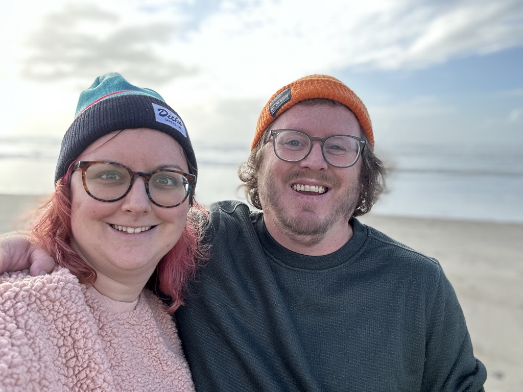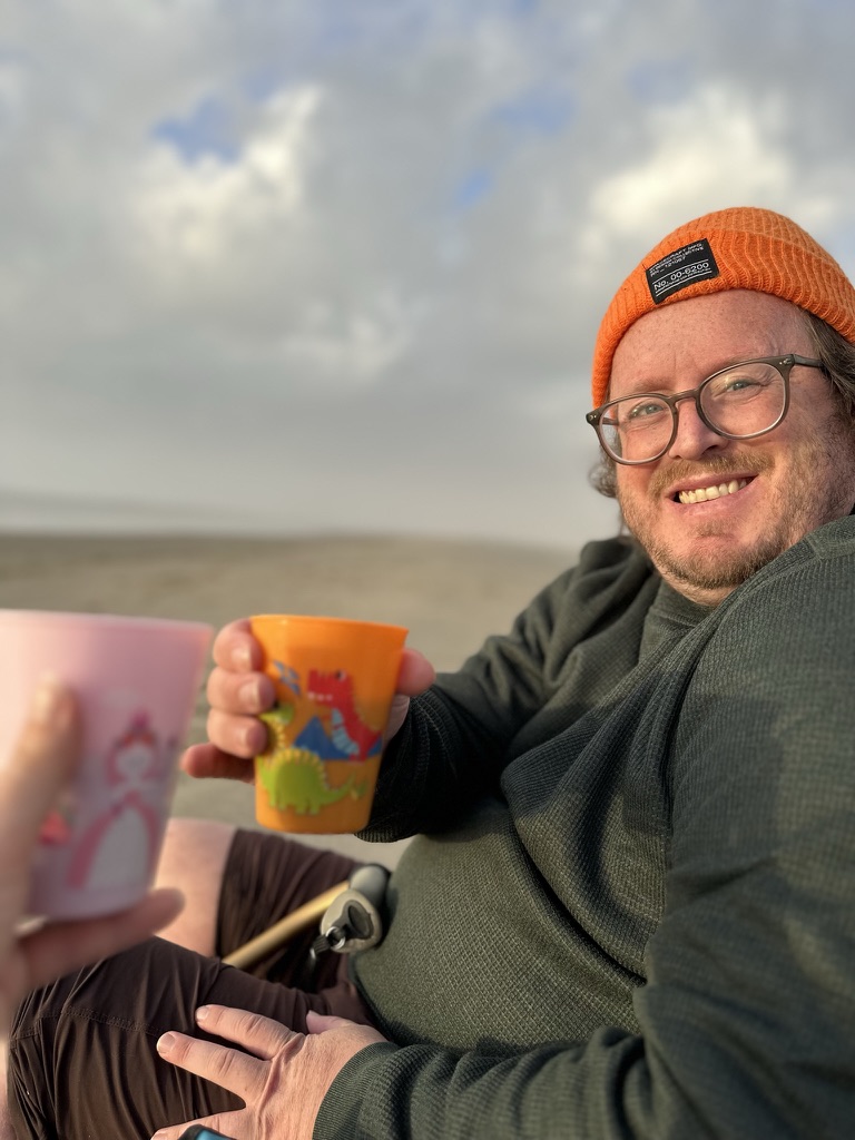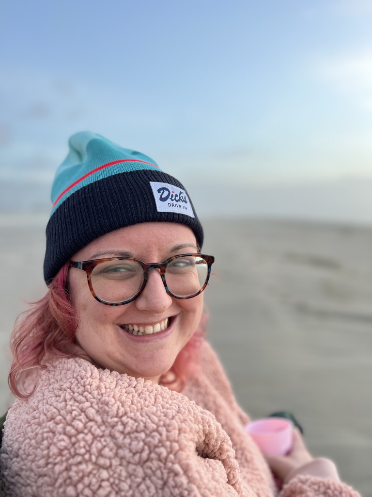 The therapist took me through the dread and wove it into the feeling of my safe space. My safe space is Rockaway Beach sitting next to you. My therapist does not know you are there, but I do. We were so happy there in room 27 with Beamer and Dottie, Beamer in his cone because Dottie scratched his eye. I imagined the sun on my face, and the cold breeze reminding me of the wide spectrum of things that can be true all at once. I noticed the glitter on the sand and the sherbert of the sun saturating the clouds as it sank below the horizon. We thought it was so beautiful, this life we created with our gremlin dogs. And it was.